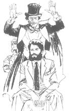 Back at the Vetters', the paper from Ned's wallet is dusted and reveals fingerprints. The evidence is taken to the police and matched to wanted criminal Sam Gambro; however Nancy does not recognize the man in the mug shot. Turns out he is Browne, but has had some plastic surgery to change his appearance. When the police arrive at the theatre to arrest the Hoaxsters, they have skipped out. The group goes to the Brownes' home address and Nancy spies the culprit lounging on his patio. Nancy and Ned jump the fence and force their way past Mrs. Browne into the house. They find Dolores chained to a bed in a room upstairs, but are then locked in the room too. They watch as the Brownes attempt to flee.