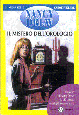 SALANI EDITORE - Firenze - 1996-1997 The Salani cover heralds this series as "Il ritorno di Nancy Drew, la Più famosa investigatrice americana" - the return of Nancy Drew, the most famous American lady detective. Salani adopted the novel concept of starting their "Nuova Series" (new series) with the U.S. #100, which was released domestically as a collector's edition of sorts. This is the story where the clock from Nancy Drew #1 is reintroduced and is involved in its second mystery. I think this is a clever place to start, as it incorporates the old into the new, while bringing new stories into the foray, rather than rehashing the same old ones which were available through Mondadori. As a side note, I believe the only other publisher which has opted to translate Nancy Drew #100 is Wahlströms of Sweden. The back of the book hypes: LA REGINA DEL GIALLO PER RAGAZZI. Le nuove avventure di Nancy Drew, giovane e insuperabile investigatrice dai capelli ramati, armata di fiuto, intelligenza, buon senso. E dei suoi amici che la proteggono e l'aiutano a risolvere complicatissimi casi, magari tra una festa e l'altra.