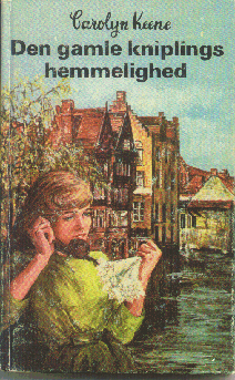 Martins Forlag (Danish) cover: possibly a fantasy montage of Nancy in front of a canal in Brugge with lace cuffs. |