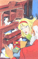 There are no witnesses as to who pushed Nancy. The girls eventually get to the art glass shop, but it is closed. They see Andreoli inside. An elderly lady calls down to the girls from upstairs and invites them in. The lady is Duchessa Dandolo and is distantly related to the doges of ages past. She admits she sent the message to Nancy, as she had heard of our sleuth's detecting skills from Professor Bagley. The duchessa explains that her nephew Filippo, a brilliant glass artisan, has been kidnapped. She is afraid to go to the police for fear of adverse publicity. Nancy explains that her top priority at this time is clearing Ned, Dave and Burt of smuggling charges, and the duchessa offers to pull some strings with her government contacts in exchange for Nancy's help in locating Filippo.