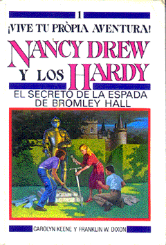 SUSAETA EDICIONES, S.A. - Madrid 1987 The six titles from the Nancy Drew - Hardy Boys "Be A Detective" series were translated for the Spanish market, and two editions were created: one for the Spanish speakers, and one for the readers who prefer Catalan. In the Spanish (Castellana) version, the series was called: Nancy Drew y los Hardy: Adventuras de Misterio donde el Detective eres Tu! The cover encourages you to "Vive tu pròpia aventura (pick your own adventure)!" The books use the American artwork on the cover, as well as Paul Frame's internal illustrations, but has white background with pink lettering and purple horizontal graphics. Translated by Federico Sánchez-Ventura. In the Catalan version, the series is called Nancy Drew I els germans Hardy. The layout and artwork on the covers are exactly the same and only the title and text have been modified. |