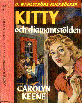 WAHLSTROMS - Stockholm Sweden's "Kitty Drew" series has been in print since 1953 and titles are still available today - Nancy and her adventures seem to have caught on quite well with the Swedes. Not only are the stories from the "classic" series available, this publishers has also produced volumes from the Case Files, Nancy Drew Notebooks, Girl Detective and Nancy Drew & the Hardy Boys SuperMysteries series. However, Wahlströms does not distinguish between the classic and case files and the titles are comingled in their "Kitty" series - I have separated them in my tables below for clarity. Due to size constrictions, titles outside of the classic series are listed on the Swedish 2 page. Please refer to my article in the August 1998 issue of Yellowback Library (Number 170) for more details on this publisher. To the right is the earlier format of the Kitty books, with the red cloth spine. These all had original artwork created for the Swedish market; many were done by Bertil Hegland, which imitated the Gilles or Nappi covers that were available in the U.S. at the same time. Other illustrators from this era were Rikard Lüsch, who used a harsh, impressionist style, and Ulla Urkio who did many psychedelic renditions for the Kitty series. |